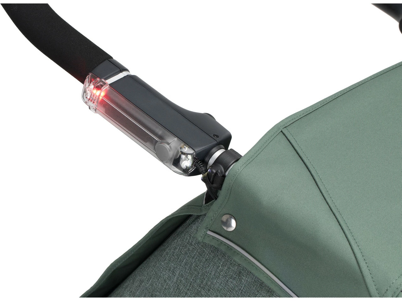 Die LED-Beleuchtung ist mit einem Dämmerungs- und Bewegungssensor versehen. Das bedeutet, sie schaltet sich bei Dunkelheit und Bewegung selbstständig ein. Sobald sie zum Stillstand gekommen ist, leuchtet sie noch 4 Minuten nach und schaltet sich dann automatisch aus. Der Akku kann bequem über ein USB-Kabel aufgeladen werden. Der Ladestatus kann via Knopfdruck kontrolliert werden.