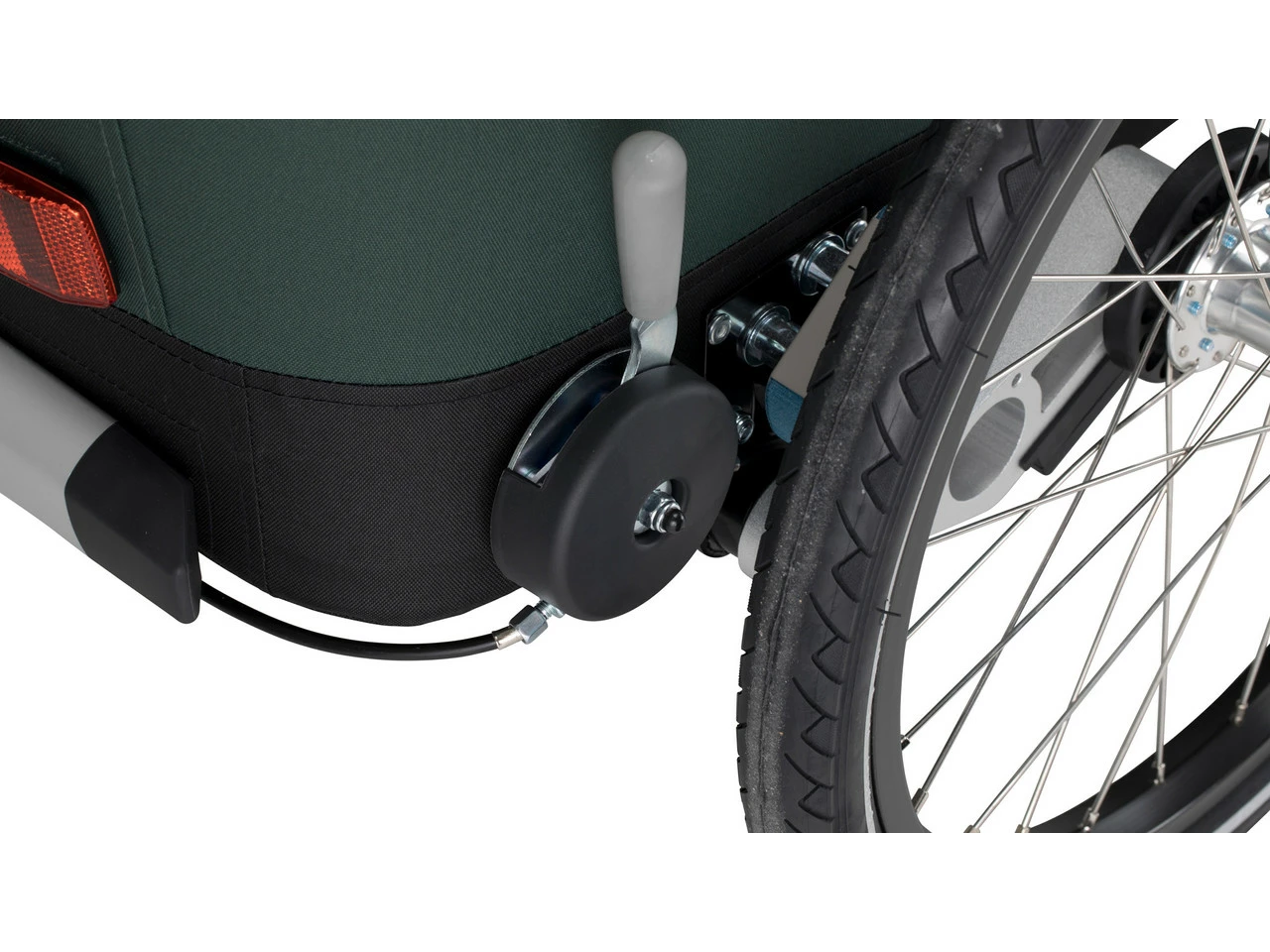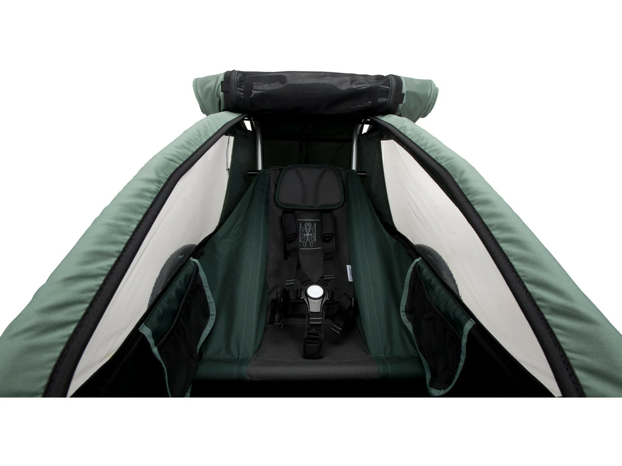 Spezifikationen:Ausführung:KinderanhängerLaufradgröße:20″Sitzplätze:1Technische Daten:Bremse:handbetätigte FeststellbremseFederung:JaMaße (HxBxT):90 x 76 x 110 cmMaße zusammengeklappt (HxBxT):71 x 28 x 106 cmVolumen Stauraum:43 LiterRahmenmaterial:AluminiumFreigaben:Zuladung max.:35 kgStützlast max.:8 kgFeatures:integrierte Beleuchtung im SchiebebügelBuggyrad mit Vollgummibereifungschadstoffgeprüftes Materialergonomisch geformte Sitze aus atmungsaktivem climatex Materialautomatische AirPad Federungreflektierende Markierungen an Fahrgastzelle mit ÜberrollbügelUPF 80+ bei Fensterfolie und Regenscheibeeinfache Bedienung dank Click & Crooz Systemgepolstertes 5-Punkt-Gurtsystem (Easy Pull)höhenverstellbarer SchiebebügelGepäckfach mit 43 LiternTechnologien:climatex: