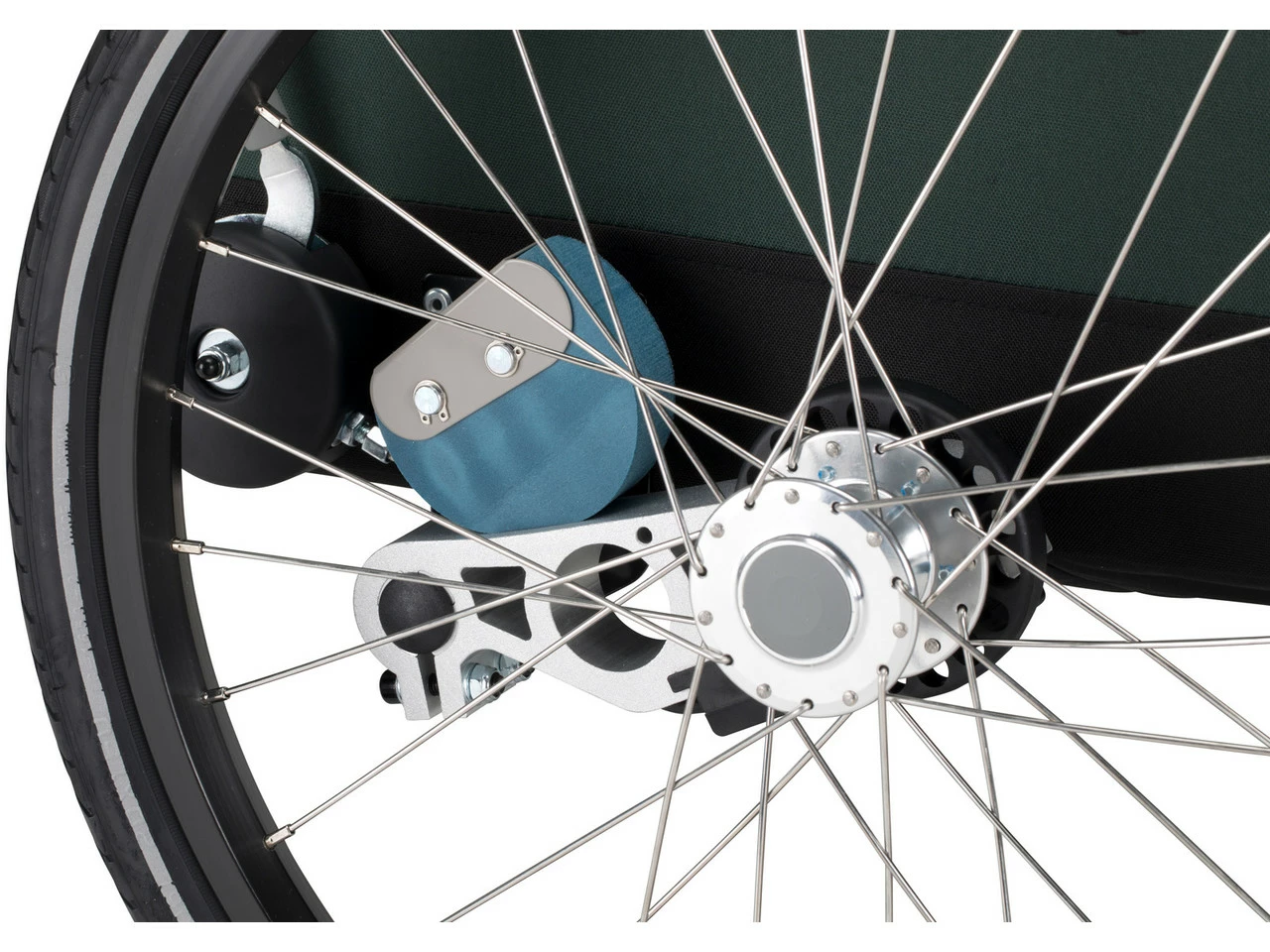Das Click & Crooz System ermöglicht den werkzeugfreien Umbau des Croozer Anhängers in Fahrradanhänger, Buggy oder Jogger. Die Adapter sind mit einer Sicherung versehen, wodurch kein Festziehen von Schrauben o. Ä. notwendig ist.