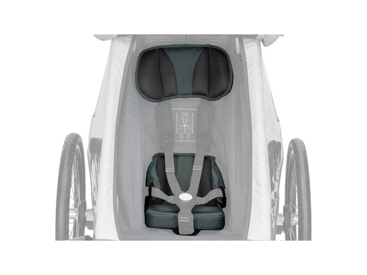 Die Sitzstütze für Kinderanhänger von Croozer trägt zu einem komfortablen Sitz für Kleinkinder bei und stabilisiert den Körper sanft und sicher. Der erhöhte Sitz erlaubt eine perfekte Anpassung der Gurte. Hüft- und Kopfstütze umschließen den kleinen Passagier sanft.