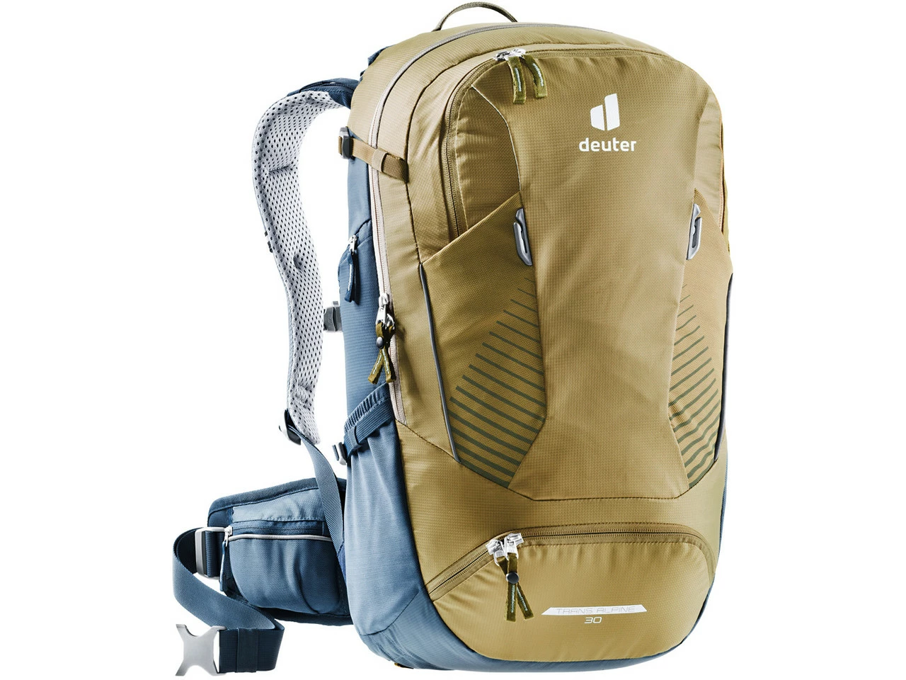 Spezifikationen:Einsatzbereich:All MountainAusführung:AllroundrucksackVolumen:30 LiterTrinkblasenfach:3 LiterTechnische Daten:Material:210D PolyamidFeatures:2 AußentaschenOrganizer-Fachstufenlos verstellbarer BrustgurtBrillenhalterungNetzhüftflossenHelmhalterungWertsacheninnenfachStretch-InnenfachVorrichtung für Trinksystem (3.0 Liter)ReflektorKontaktrückenLuftpumpenfachSitzmatteanpassbare SchienenLageverstellriemenBodenfachSmartphone TascheSOS-LabelRegenhülleKompressionsriemenHerstellernummern:black:320022170000lapis-navy:320022113160clay-marine:320022163140Lieferumfang:1 x Rucksack deuter Trans Alpine 30