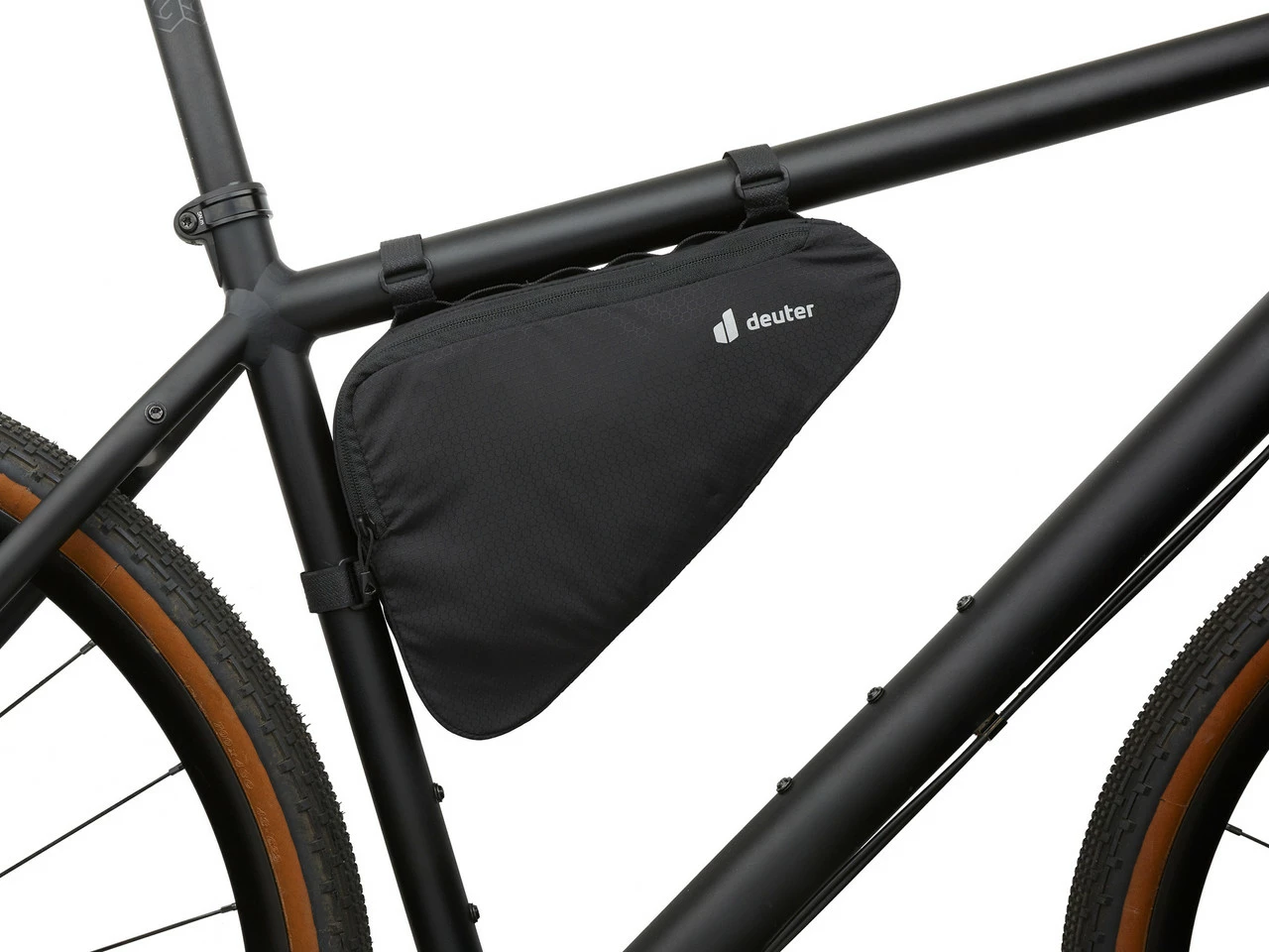 Die Triangle Front Bag Rahmentasche von deuter hat ein Volumen von 2,2 Liter und wird im hinteren Rahmendreieck befestigt.