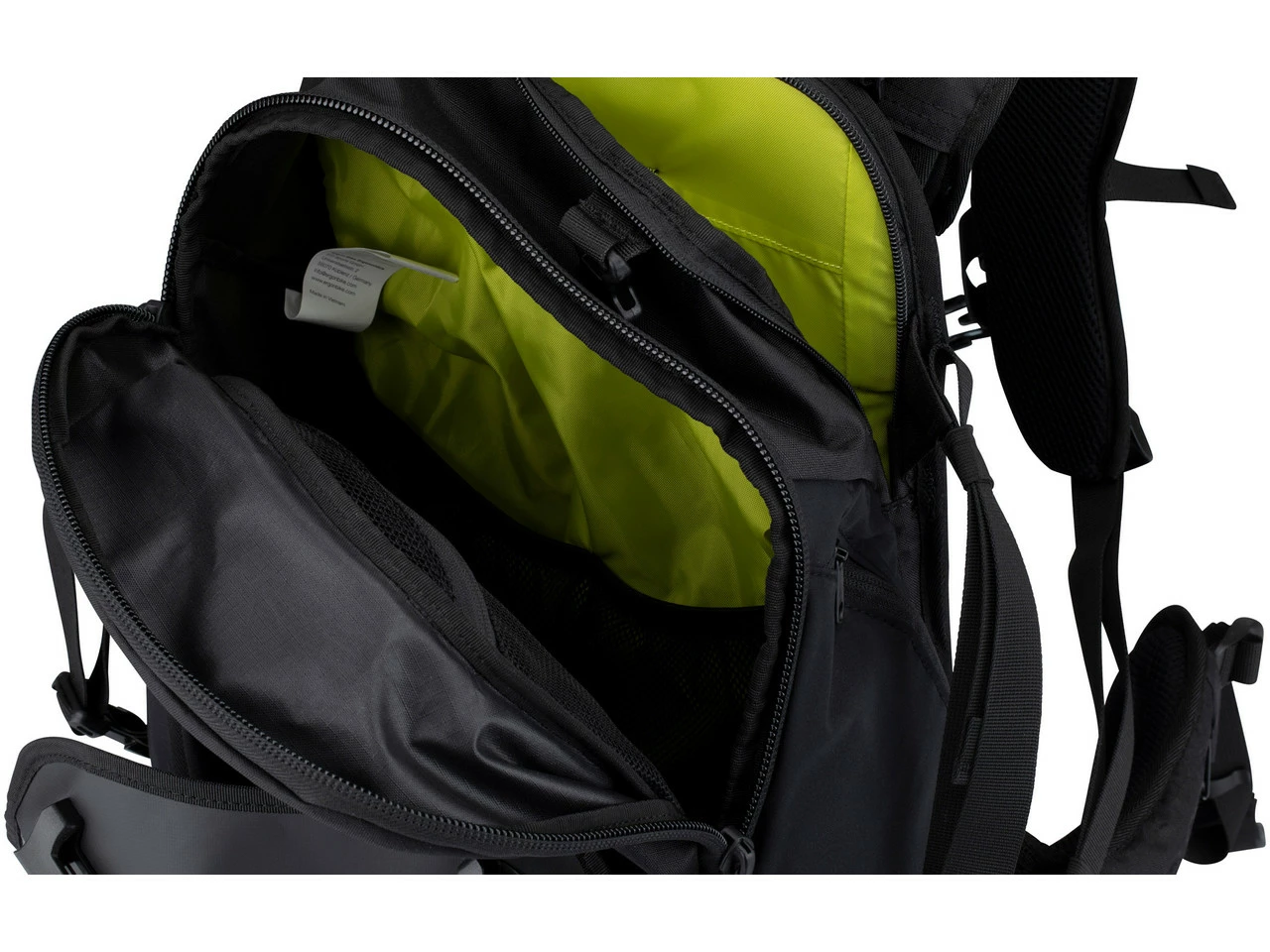 Spezifikationen:Einsatzbereich:All Mountain, Cross CountryAusführung:AllroundrucksackVolumen:30 LiterTrinkblasenfach:2 LiterTechnische Daten:Material:Nylon, PolyesterZuladung:Empfohlen bis 10 kgFeatures:großes Hauptfach mit zwei Zugängen, herausnehmbarem Zwischenboden und 2 NetzinnentaschenTasche mit Fleecefutter im Hauptfachgroßes Frontfach mit Schlüsselfach und drei Netzinnentaschenkleine Reißverschlusstasche vornezwei große, elastische Seitentaschen mit Werkzeug- und Pumpenfächernzwei HüfttaschenKartentasche mit FrontflapSchlaufe für Smartphonetasche am SchultergurtTasche mit Regenhülle im RucksackbodenTechnologie:Adaptive Carrier System: