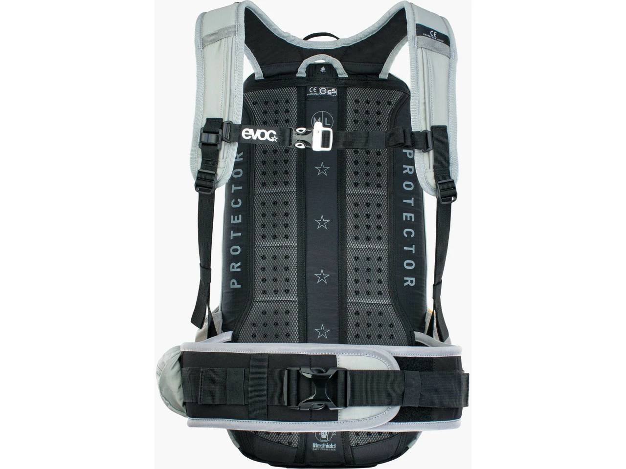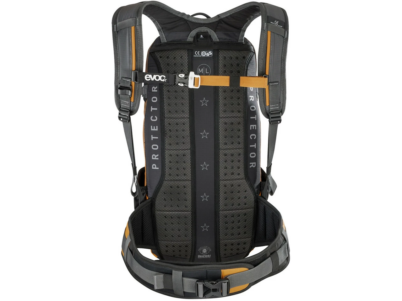 Der segmentierte Schichtaufbau des Liteshield Rückenprotektors, ursprünglich aus dem Motorradsport stammend, vereint optimale Stoßdämpfung mit höchstmöglichem Tragekomfort. Die Stoßdämpfung des Liteshield Rückenprotektors ist beinahe doppelt so hoch wie für die CE-Norm erforderlich (Maximum Impact Protection). Der Liteshield Rückenprotektor wiegt nur 145 g (Extra light). Der segmentierte Schichtaufbau (Comfort Layer Construction) ermöglicht der Rückenpartie, sich den Konturen der Wirbelsäule anzupassen (Adapts flexibly to spine). Die Stoßdämpfung des Liteshield Rückenprotektors wird durch unterschiedliche Temperaturen nicht beeinträchtigt – bewährt für Temperaturen von +30° bis -20° Celsius (Temperature Insensitivity).