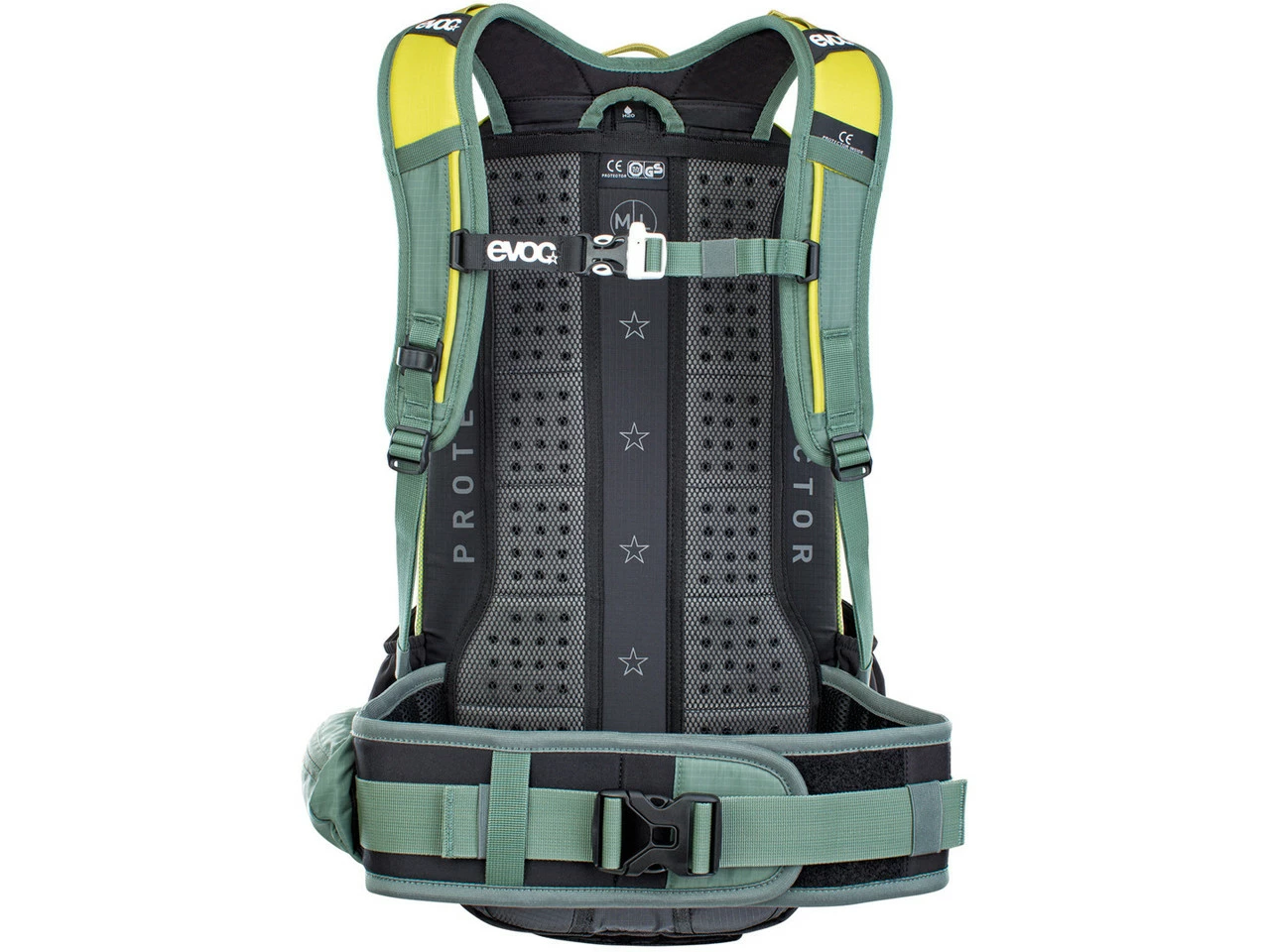 Herzstück des Protektorrucksack-Systems ist der extrabreite, ergonomisch geformte Neopren-Hüftgurt mit Klettverschluss und einer großen Heavy-Duty-Schnalle, der die Hauptlast auf die Hüfte überträgt und damit genau am Körperschwerpunkt ansetzt. Die ergonomisch geschnittenen Schultergurte sind besonders komfortabel und halten den Rucksack dabei genau in der vordefinierten Rückenschutzposition. Durch den Einsatz von Air-Mesh-Elementen, EVA-Polstern mit Belüftungslöchern und einem großen Belüftungskanal in der Mitte, wird maximale Belüftung gewährleistet.