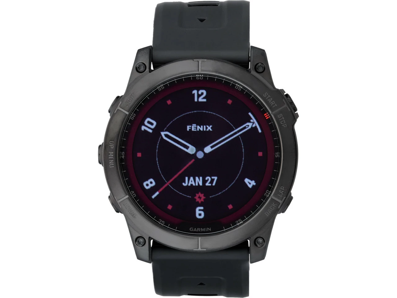 Die fenix 7X GPS Multisport-Smartwatch von Garmin mit Titan-Lünette punktet mit starkem Akku und großem Display. Die Sapphire Solarladelinse sorgt für extralange Akkulaufzeit, sodass Dich die Smartwatch rund um die Uhr bei allen Aktivitäten begleitet. Das transflektive MIP-Display ist auch bei Sonneneinstrahlung gut zu erkennen. Die Uhr lässt sich mit Tasten oder Touchscreen bedienen, bietet Kartennavigation und zahlreiche Sport-Apps und -Profile. Du kannst sie mit Smartphone oder Sensoren koppeln, um ihre Funktionen noch zu erweitern.