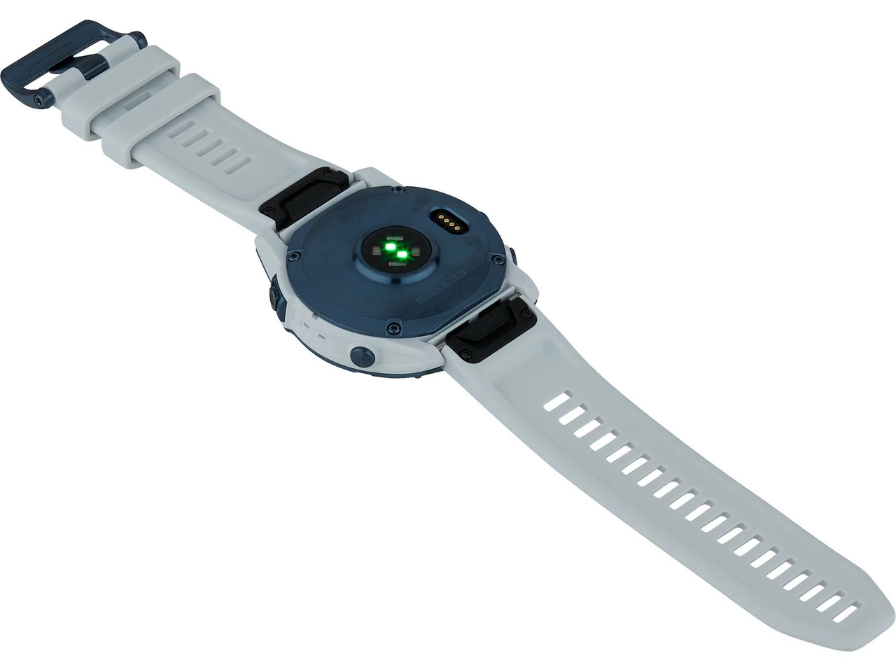 Features:kratzfeste Power Sapphire Linse mit Solarladefunktion zur Erhöhung der AkkulaufzeitLünette (Zifferblatt-Umrandung) aus Titanmit Touchscreen, kann auf Wunsch deaktiviert oder vorübergehend gesperrt werdentransflektives MIP-Display auch bei Sonneneinstrahlung gut lesbar26 mm breites Silikon-Wechselarmband für Handgelenksumfänge von 127 bis 210 mmmit Taschenlampenfunktionkann via Garmin Connect App mit dem Smartphone gekoppelt werdenmehr als 60 vorinstallierte Sport- und Outdoor-Appsvorinstallierte, animierte Workouts für Cardio-, Kraft-, Yoga-, Pilates- und HIIT-Trainingtägliche Trainingsempfehlungen für Laufen und Radfahren angepasst an