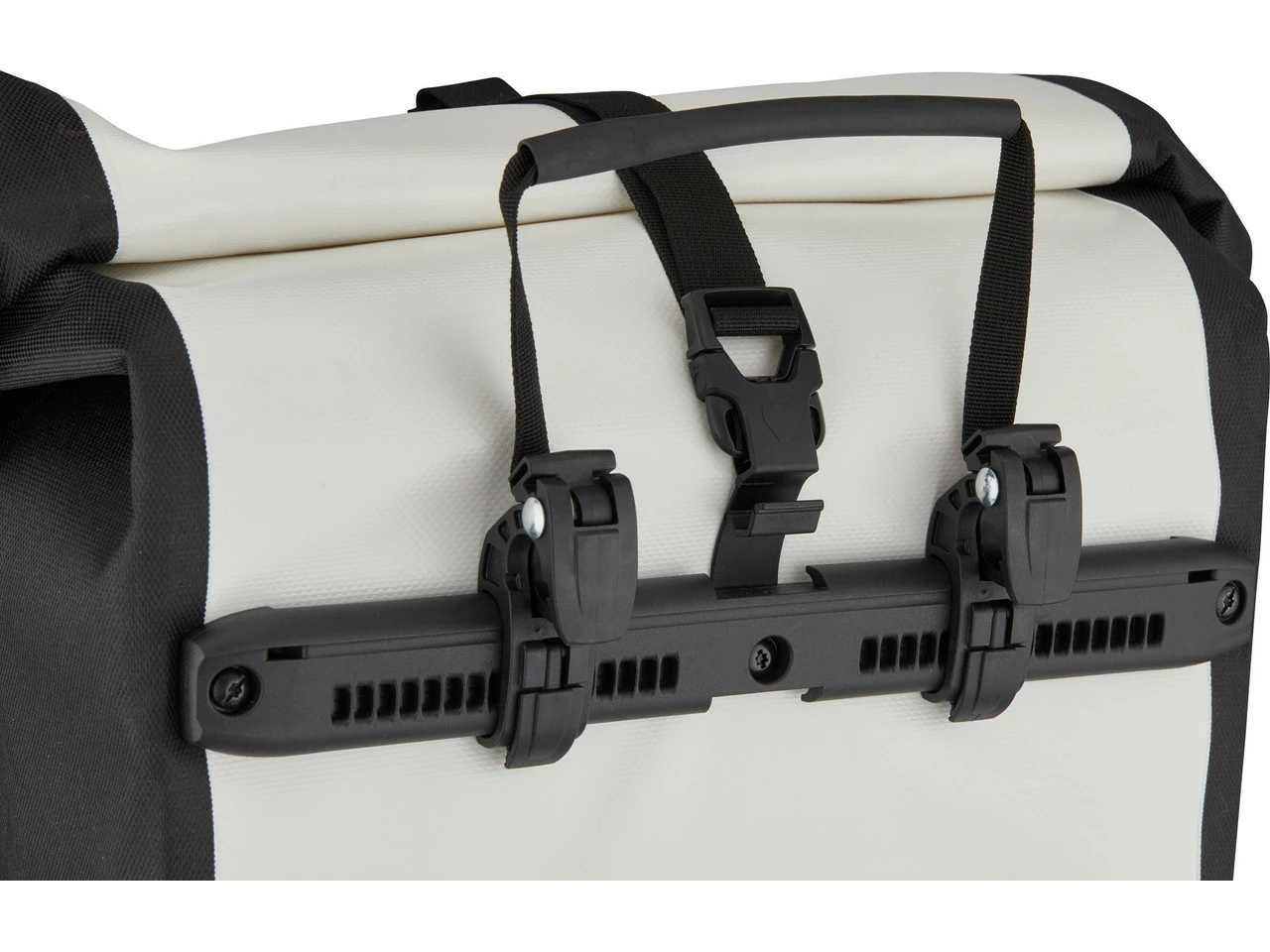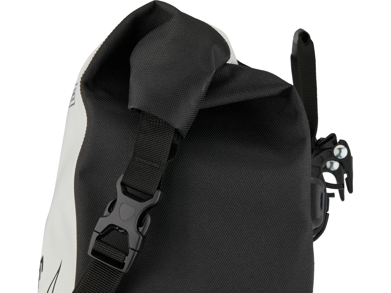 Spezifikationen:Einsatzbereich:Touring & Trekking, CityKompatibilität:für Gepäckträger bis 16 mm Durchmesser (8 mm, 10 mm und 12 mm Reduzierstücke inklusive)Material:Polyester, PVC-beschichtet (PD620, PS490)Schutzklasse:staubdicht, kein Staubeintritt, geschützt gegen Spritzwasser aus allen Richtungen (IP64)Maße (HxBxT):42 cm x 23/32 cm x 17 cmVolumen:20 LiterHinweis des Herstellers:Um Schutzklasse IP64 (spritzwassergeschützt aus allen Richtungen) zu erreichen, muss der Verschluss 3-4-mal eingerollt und nach unten abgespannt werden.