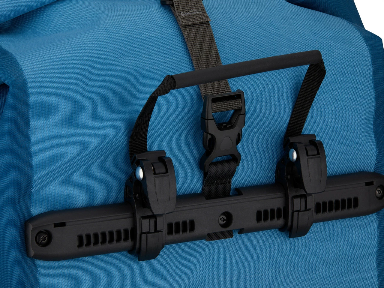 Das Quick-Lock2.1-Halterungssystem basiert auf dem bewährten Quick-Lock2-System, bietet jedoch einige Verbesserungen. Die obere Schiene, in der auch die optionale Diebstahlsicherung angebracht werden kann, ist einteilig ausgeführt, was ein Plus an Stabilität mit sich bringt. Auf der Innenseite kommen besonders flache Unterlegscheiben zum Einsatz, so wird der Tascheninhalt durch diese kaum beeinträchtigt. Der Taschengriff dient als Riegel: Hebst Du den Griff an, öffnen sich die Halterungshaken, lässt Du ihn los, schließen sie sich. Die Reduzierstücke für unterschiedliche Rohrdurchmesser werden seitlich eingeschoben und bleiben so sicher an Ort und Stelle. Zusätzlich zu den serienmäßig mitgelieferten 16 mm Grundhaken mit Reduzierstücken in 8 und 10 mm, liegen nun auch 12 mm Einsätze bei. Optional erhältlich ist zudem ein 20 mm Reduzierstück, passend für den Gepäckträger mit großem Rohrdurchmesser, wie sie teilweise an E-Bikes verbaut sind. Der Zwei-Komponenten-Kunststoff mit Anti-Scratch-Funktion, der für die untere Schiene in Form einer Halbellipse verwendet wird, sorgt für weiche Auflageflächen und reduziert die Reibung am Gepäckträger. Der untere Haken kann variabel angepasst und in 15-Grad-Schritten gedreht werden. Die Handhabung ist denkbar einfach: Für die Einstellung der Haken wird kein Werkzeug benötigt.