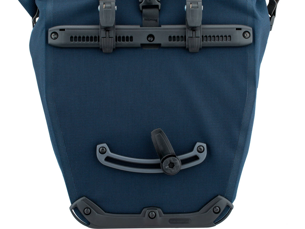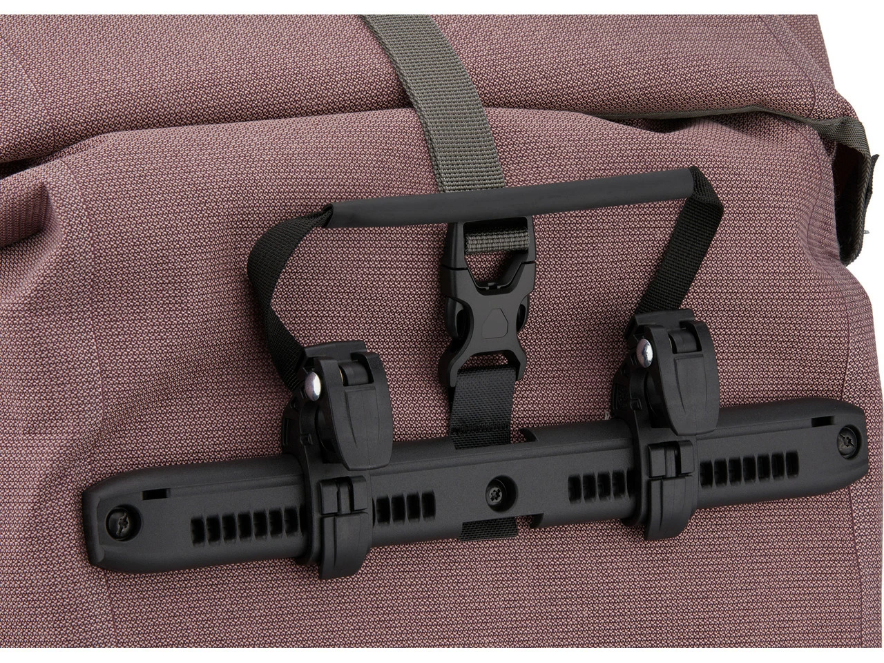 Das Quick-Lock2.1-Halterungssystem basiert auf dem bewährten Quick-Lock2-System, bietet jedoch einige Verbesserungen. Die obere Schiene, in der auch die optionale Diebstahlsicherung angebracht werden kann, ist einteilig ausgeführt, was ein Plus an Stabilität mit sich bringt. Auf der Innenseite kommen besonders flache Unterlegscheiben zum Einsatz, so wird der Tascheninhalt durch diese kaum beeinträchtigt. Der Taschengriff dient als Riegel: Hebst Du den Griff an, öffnen sich die Halterungshaken, lässt Du ihn los, schließen sie sich. Die Reduzierstücke für unterschiedliche Rohrdurchmesser werden seitlich eingeschoben und bleiben so sicher an Ort und Stelle. Zusätzlich zu den serienmäßig mitgelieferten 16 mm Grundhaken mit Reduzierstücken in 8 und 10 mm, liegen nun auch 12 mm Einsätze bei. Optional erhältlich ist zudem ein 20 mm Reduzierstück, passend für den Gepäckträger mit großem Rohrdurchmesser, wie sie teilweise an E-Bikes verbaut sind. Der Zwei-Komponenten-Kunststoff mit Anti-Scratch-Funktion, der für die untere Schiene in Form einer Halbellipse verwendet wird, sorgt für weiche Auflageflächen und reduziert die Reibung am Gepäckträger. Der untere Haken kann variabel angepasst und in 15-Grad-Schritten gedreht werden. Die Handhabung ist denkbar einfach: Für die Einstellung der Haken wird kein Werkzeug benötigt.