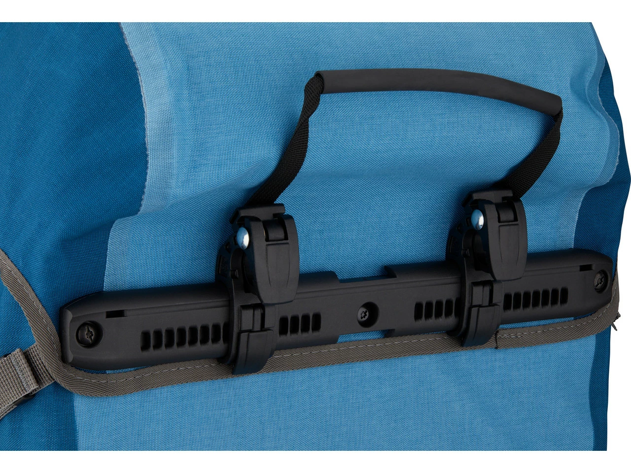 Die ORTLIEB Bike-Packer Plus Fahrradtaschen aus robustem Cordura-Gewebe machen dank ihres eleganten textilen Gewebes eine gute Figur auf Deinem Touring-Bike und sind dabei vollständig wasserdicht. Mit einem Fassungsvermögen von 21 Litern pro Tasche bieten sie Dir viel Stauraum für Ausrüstung, Proviant und andere Habseligkeiten. Ein unter dem Deckelverschluss liegender Staublatz mit leicht bedienbarem Kordelzug schützt Dein Hab und Gut vor Staub, Regen und Schnee. Ein weiteres praktisches Extra bietet die ebenfalls mit Deckelverschluss ausgestattete, dreidimensionale Außentasche, in der Du Kleinigkeiten für schnellen Zugriff aufbewahren kannst. Apropos praktisch: mithilfe des Quick-Lock2.1-Halterungssystems sind die Taschen im Nu an Deinem Gepäckträger befestigt, schnell wieder gelöst und dank Schultertragegurte einfach zu transportieren, wenn Du das Bike mal stehen lässt.