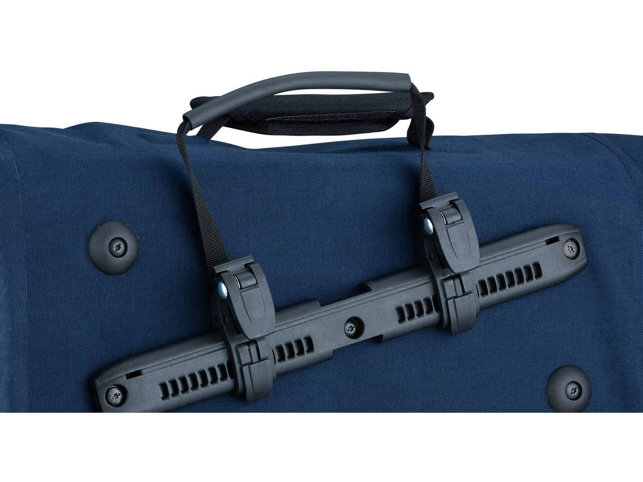 Das Quick-Lock2.1-Halterungssystem basiert auf dem bewährten Quick-Lock2-System, bietet jedoch einige Verbesserungen. Die obere Schiene, in der auch die optionale Diebstahlsicherung angebracht werden kann, ist einteilig ausgeführt, was ein Plus an Stabilität mit sich bringt. Auf der Innenseite kommen besonders flache Unterlegscheiben zum Einsatz, so wird der Tascheninhalt durch diese kaum beeinträchtigt. Der Taschengriff dient als Riegel: Hebst Du den Griff an, öffnen sich die Halterungshaken, lässt Du ihn los, schließen sie sich. Die Reduzierstücke für unterschiedliche Rohrdurchmesser werden seitlich eingeschoben und bleiben so sicher an Ort und Stelle. Zusätzlich zu den serienmäßig mitgelieferten 16 mm Grundhaken mit Reduzierstücken in 8 und 10 mm, liegen nun auch 12 mm Einsätze bei. Optional erhältlich ist zudem ein 20 mm Reduzierstück, passend für den Gepäckträger mit großem Rohrdurchmesser, wie sie teilweise an E-Bikes verbaut sind. Der Zwei-Komponenten-Kunststoff mit Anti-Scratch-Funktion, der für die untere Schiene in Form einer Halbellipse verwendet wird, sorgt für weiche Auflageflächen und reduziert die Reibung am Gepäckträger. Der untere Haken kann variabel angepasst und in 15-Grad-Schritten gedreht werden. Die Handhabung ist denkbar einfach: Für die Einstellung der Haken wird kein Werkzeug benötigt.