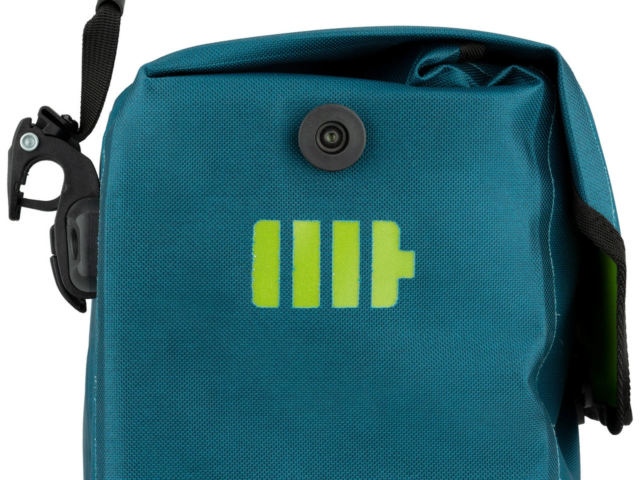 Die wasserdichte E-Mate Fahrradtasche von ORTLIEB ist besonders auf die Bedürfnisse von E-Bike-Fahrern abgestimmt. Sie hat in der Mitte ein gepolstertes, herausnehmbares Fach für den E-Bike (Unterrohr-) Akku und eine flexible Reißverschluss-Innentasche für das E-Bike-Display unter dem Deckel. Der Deckel hat einen magnetischen Verschluss, der Deine Sachen zuverlässig vor Staub und Wasser schützt. Mittels Quick-Lock2.1-Halterungssystems befestigst Du die Tasche schnell am Gepäckträger und löst sie ebenso schnell wieder.