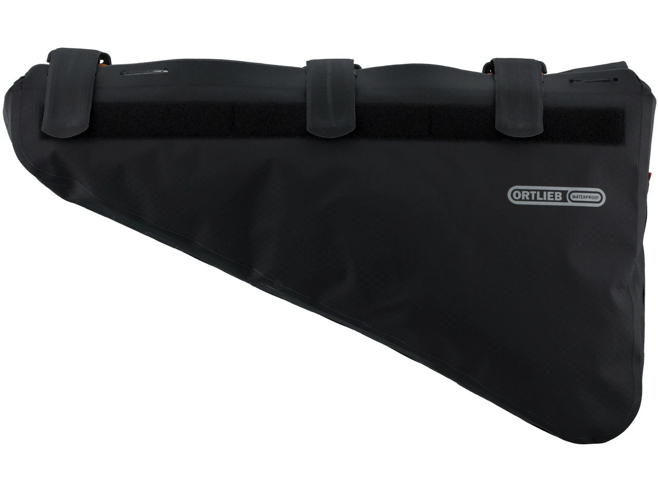 Die ORTLIEB Frame-Pack RC mit Rollverschluss nutzt beim Bikepacking den Platz im Rahmendreieck bestmöglich aus. Aufgrund des tiefen Schwerpunktes bringst Du Proviant oder schwerere Ausrüstung wie Werkzeug und Zeltstangen optimal unter. Das leichte, robuste Nylongewebe ist wasserdicht beschichtet und stellt zusammen mit dem ebenfalls wasserdichten Rollverschluss mit Silikonringen zuverlässigen Schutz für Deine Habseligkeiten sicher. Mittels individuell anpassbarer Klettverschlussschlaufen befestigst Du die Frame-Pack RC an Oberrohren mit einem Durchmesser bis 48,8 mm und kannst zusätzlich drei separate Klettbänder am Sattel- und/oder Unterrohr anbringen. Dabei ist sie auch für Carbon-Rahmen geeignet.