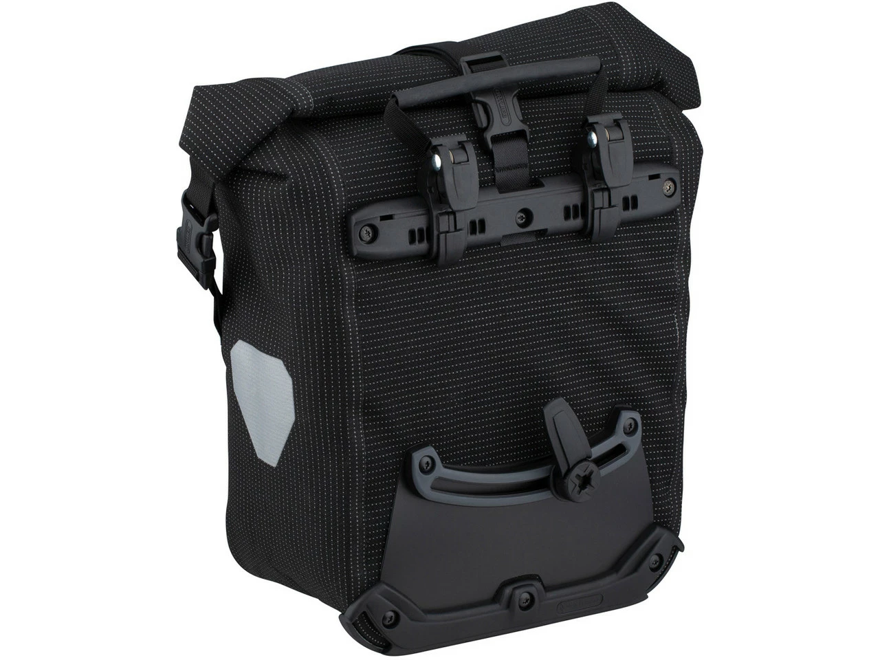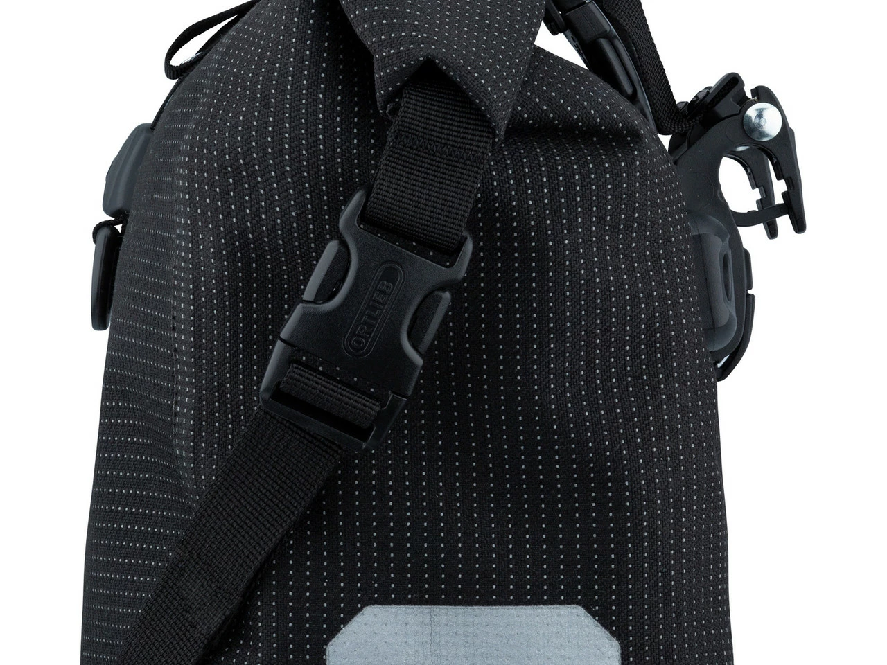 Freigaben:Belastbarkeit (max.):9 kg (pro Tasche)Features:Lowrider- oder Hinterradtaschen aus vollflächig reflektierendem Cordura-GewebeTaschenumfang leuchtet bei Lichteinfallgroßflächige, leuchtstarke Reflektoren aus 3M™ Scotchlite™ ReflexmaterialwasserdichtRollverschluss zum sicheren Verschließen der TascheQuick-Lock2.1-Halterungssystemeinzeln oder paarweise verwendbarmit integrierter Innentasche und Schultergurtinnen leicht zu reinigenPVC-freiMade in Germany
