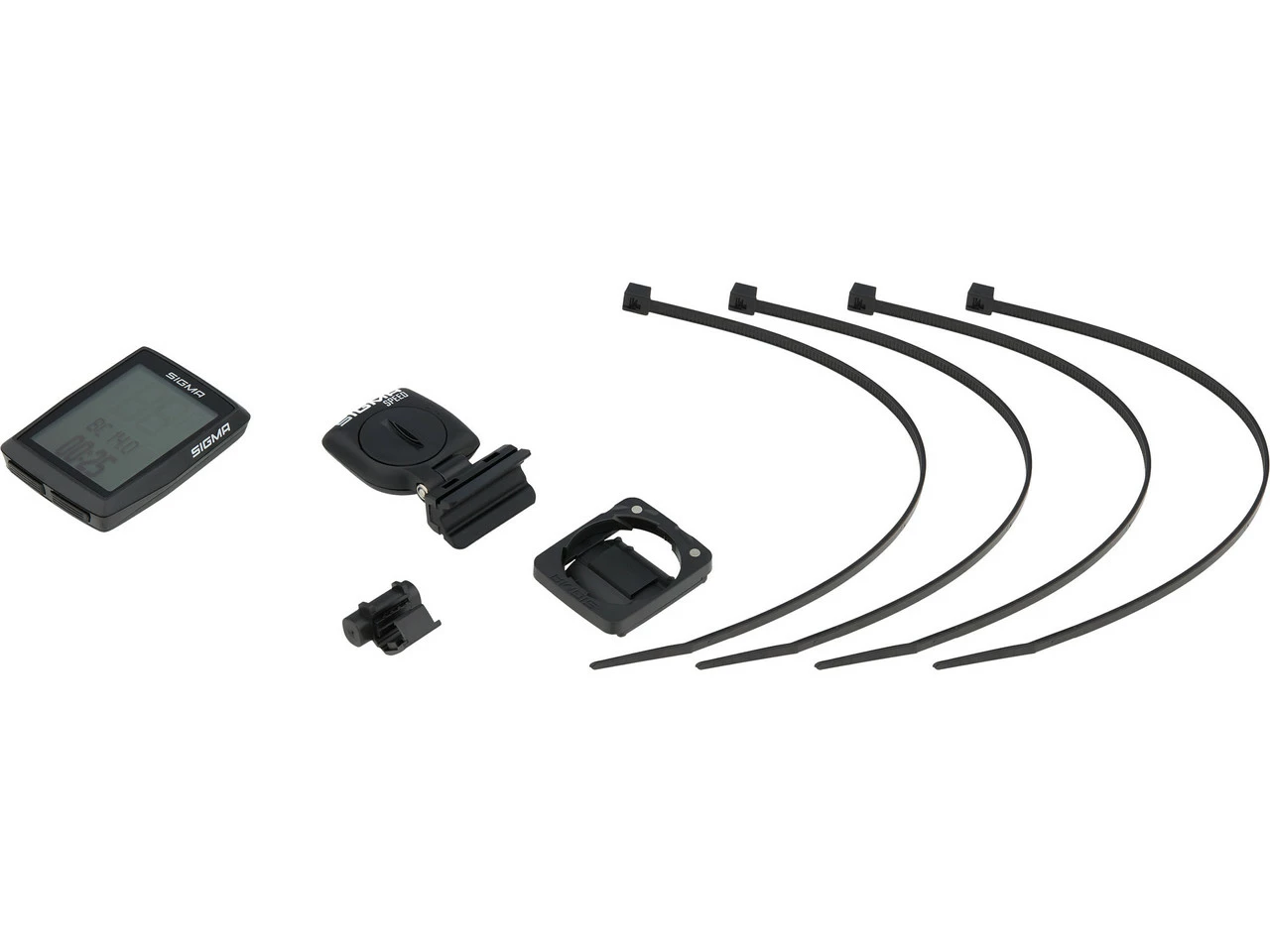 Lieferumfang:1 x Tacho Sigma BC 14.0 WL1 x Universalhalterung Sigma1 x Geschwindigkeitssensor Sigma STS1 x Speichenmagnet2 x Gummiring