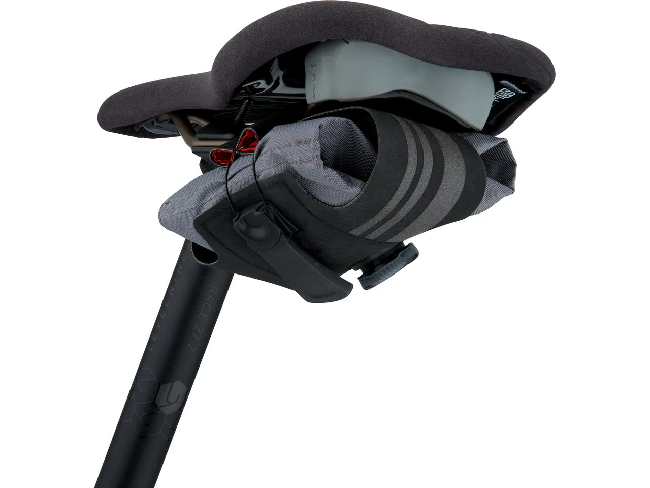 Die Asymmetrico Satteltasche von SILCA bietet Platz für die nötigsten Pannenhelfer und lässt sich dank BOA® System klapperfrei an den Sattelstreben befestigen.