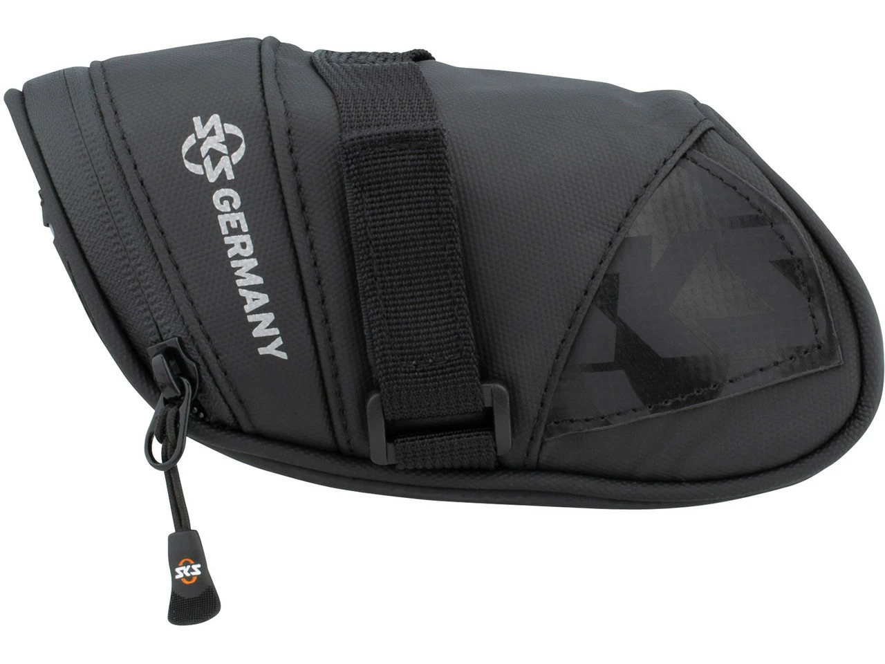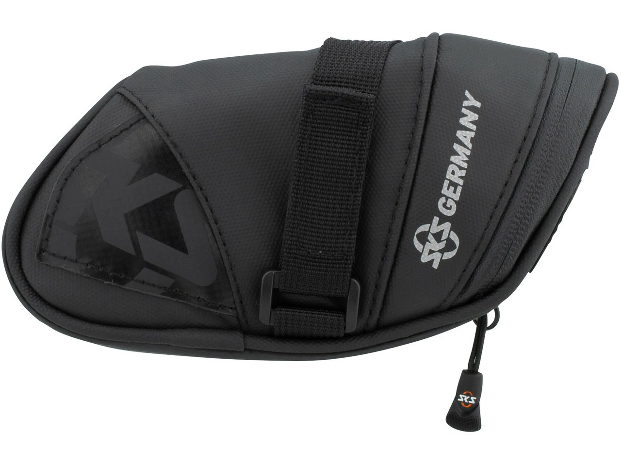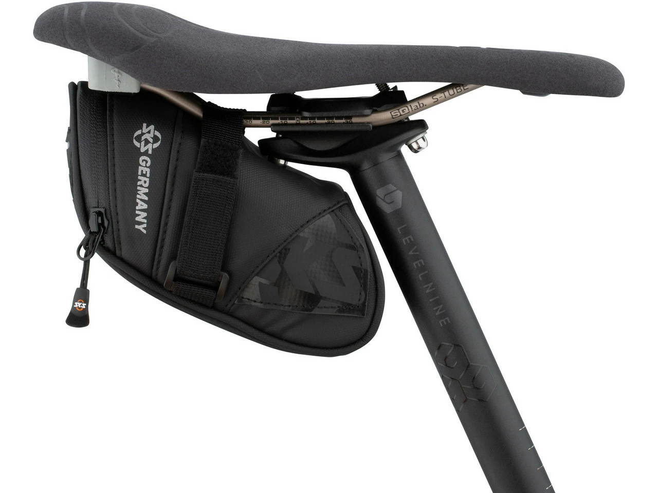 Die Explorer Straps 500 Satteltasche von SKS bietet Platz für kleine Werkzeuge oder Wertgegenstände und ist schnell am Sattel angebracht.