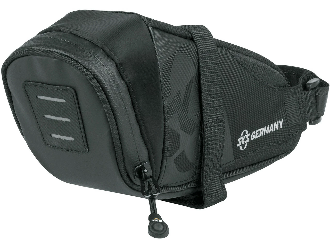 Leicht, funktionell und aerodynamisch. Die schlanke Racer Straps Satteltasche aus robustem, wasserabweisendem Gewebe integriert sich optimal am Rennrad und bietet dennoch ausreichend Platz für Tools, Ersatzschlauch und sonstige Kleinigkeiten. Reflektierende Elemente wie das SKS-Logo sorgen für Sicherheit im Dunkeln. Neben dem stylischen Design überzeugt die Racer Straps mit weiteren Features wie laminierten Reißverschlüssen mit ergonomischem Easy-Zip, praktischen Innentaschen oder dem orangefarbenen Innenfutter zum leichteren Auffinden der Utensilien.