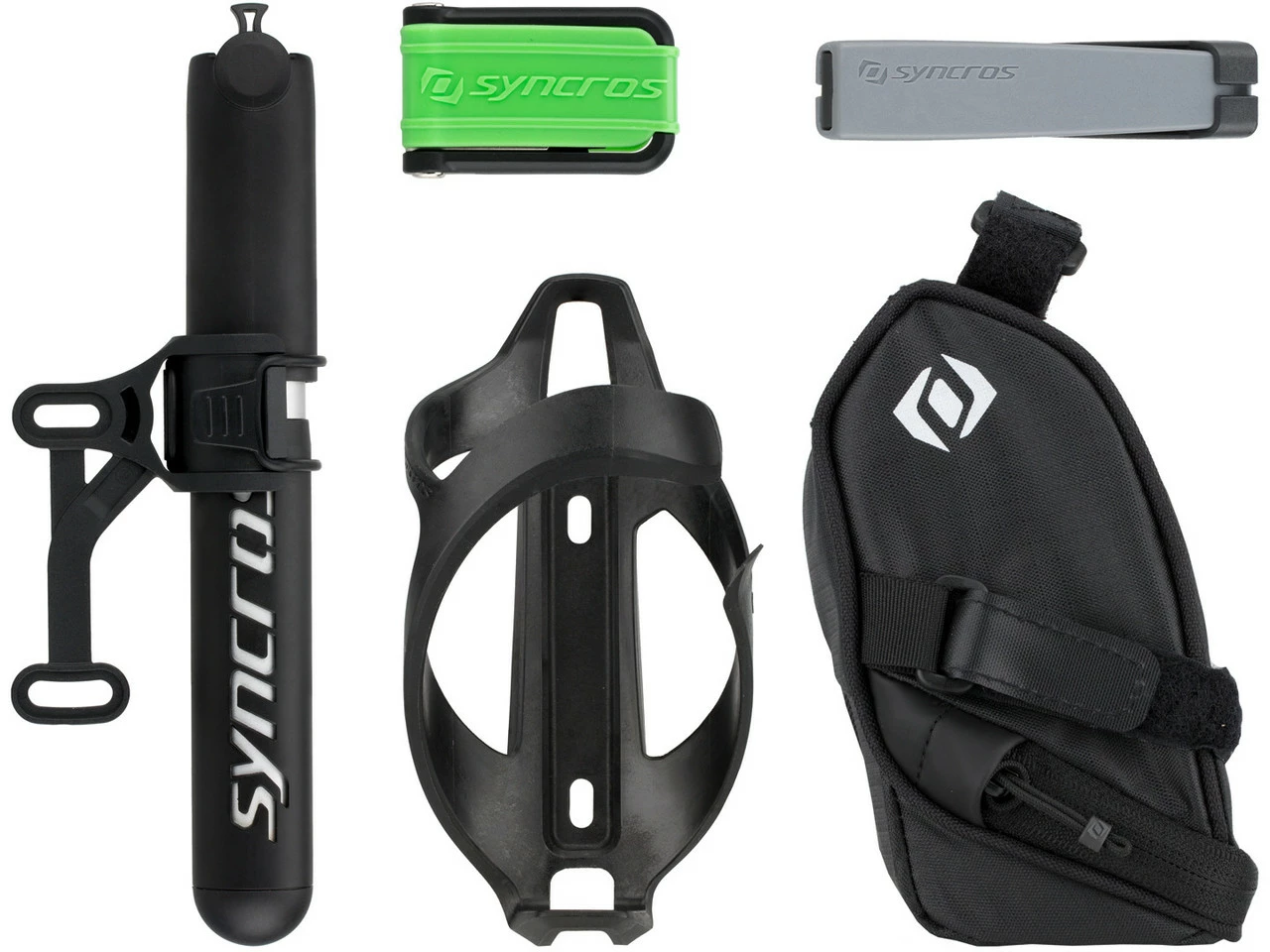 Lieferumfang:1 x Satteltasche Syncros2 x Reifenheber Syncros1 x Minipumpe Syncros HV2.01 x Multitool Syncros Matchbox 91 x Flaschenhalter Syncros
