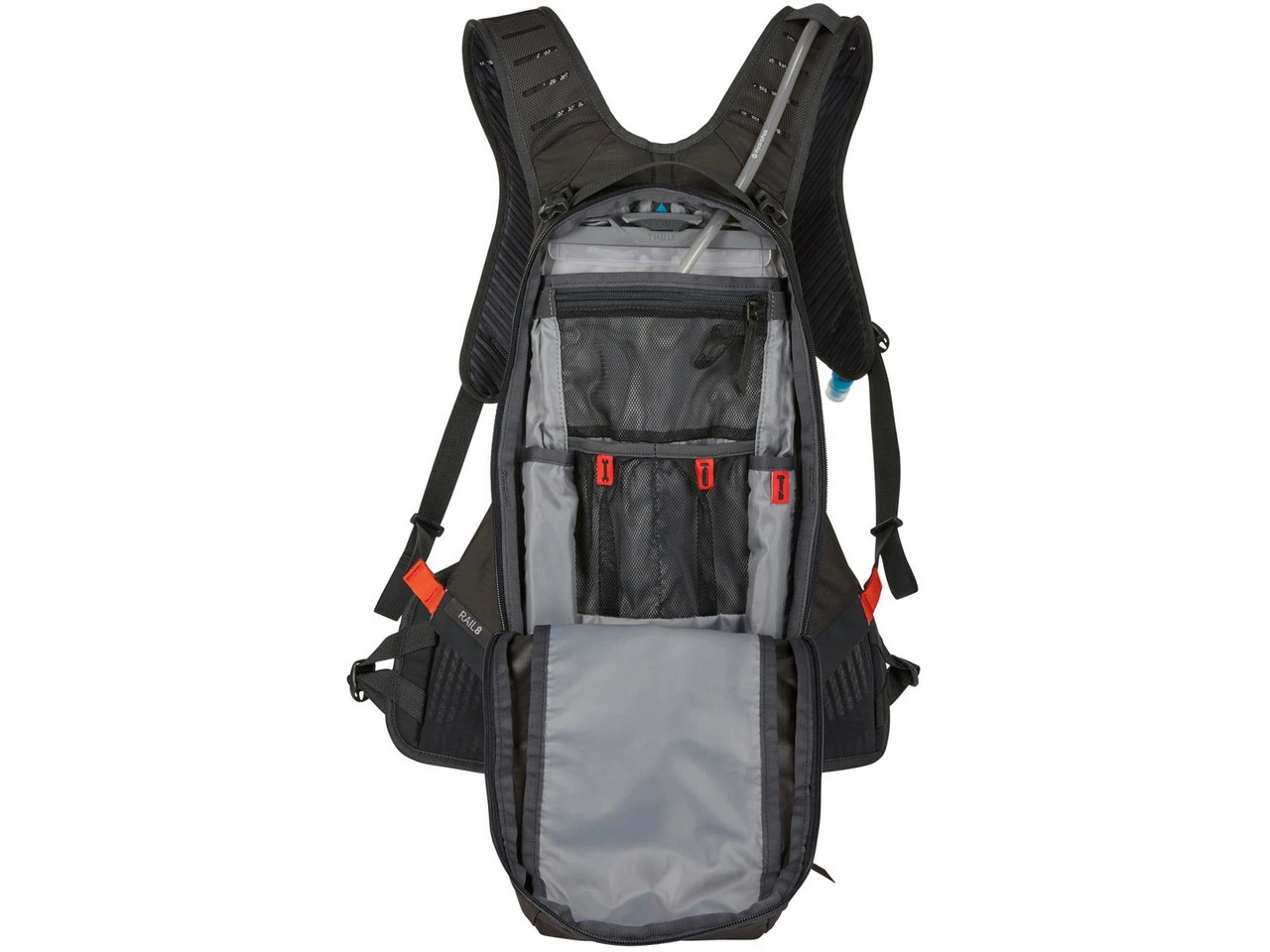 Spezifikationen:Einsatzbereich:Cross Country, Trail, Enduro, Downhill, Touring/TrekkingAusführung:TrinkrucksackVolumen:8 Liter / 12 LiterTrinkblasenfach:2,5 LiterTechnische Daten:Material:NylonGrößen:18 x 16 x 42 cm / 21 x 18 x 44 cmFeatures:benutzerfreundliche 2,5 Liter HydraPak Trinkblase mit Schiebeverschluss für leichte Reinigung und verriegelbarem Beißventil, um Lecks vor und nach der Fahrt zu vermeidenspezielle Innentaschen für Werkzeuge, Pumpen, Snacks und ZubehörKompressionsfach mit Platz für eine Jacke oder zusätzliche Bekleidungsschichtenüberragender Halt für aggressives Downhillfahren und Sprünge dank sicherer Passformverbessertes Fahrverhalten des Fahrrads und geringere Muskelbelastung dank optimaler Gewichtsverteilung und niedrigem Schwerpunktleichter Zugang zu Trikottaschen am Rücken ohne den Rucksack abzulegengute Sichtbarkeit dank reflektierender Elemente und Schlaufe zur Befestigung eines Lichtsfreihändiges Trinken während der Fahrt mit dem ReTrakt SchlauchrückholsystemTechnologien:ReTrakt Schlauchrückholsystem: