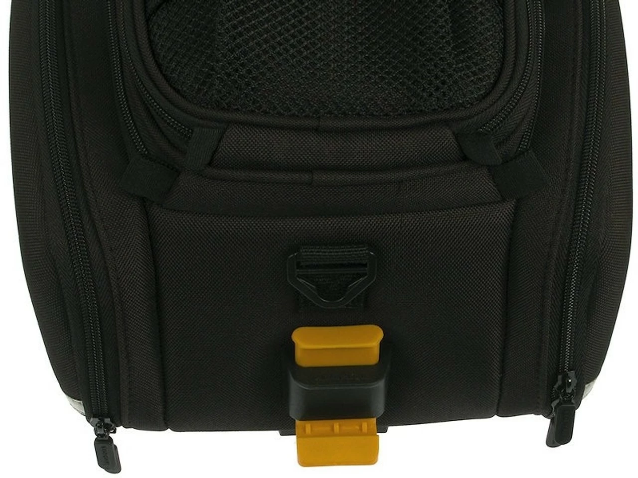 Tasche draufschieben. Klick. Und tschüss. Topeaks QuickTrack™ System macht das Anbringen von QuickTrack™ Taschen oder Körben an einem Topeak Gepäckträger unglaublich einfach. Schiebe einfach Deine Tasche auf die Schiene, bis sie einrastet. Fertig. Kein Werkzeug, keine Halteriemen, kein Ärger. Zum Abnehmen betätige einfach den gelben Sicherheitsverschluss und ziehe die Tasche von der Schiene.