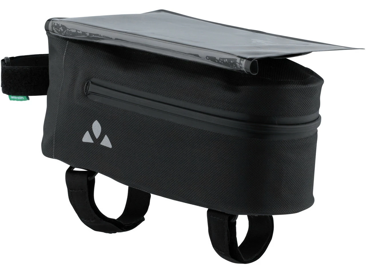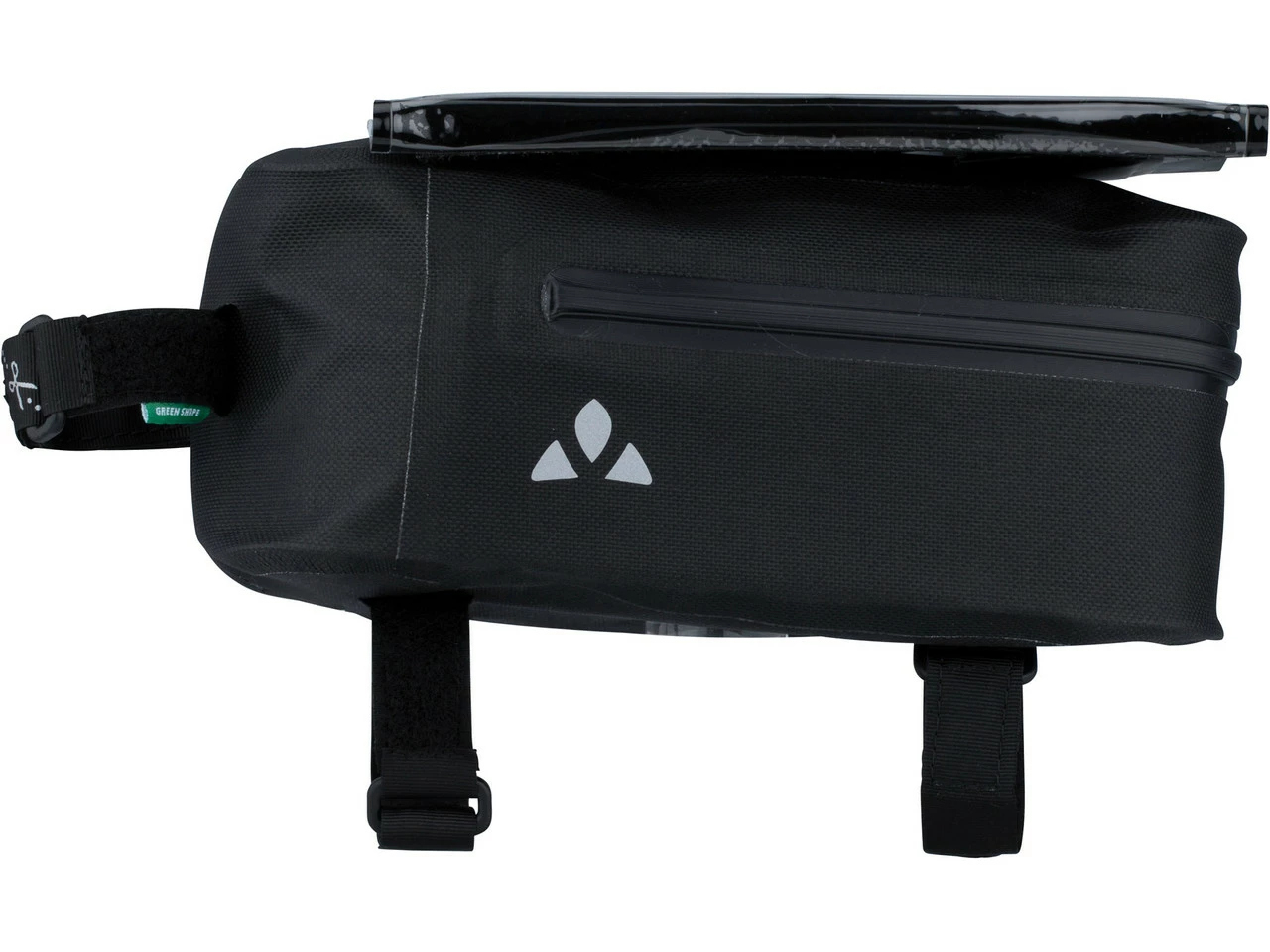 Mit der wasserdichten Carbo Guide Bag Aqua Oberrohrtasche von VAUDE kannst Du Dein Smartphone geschützt vor Regen oder Spritzwasser transportieren und zeitgleich zur Navigation nutzen.