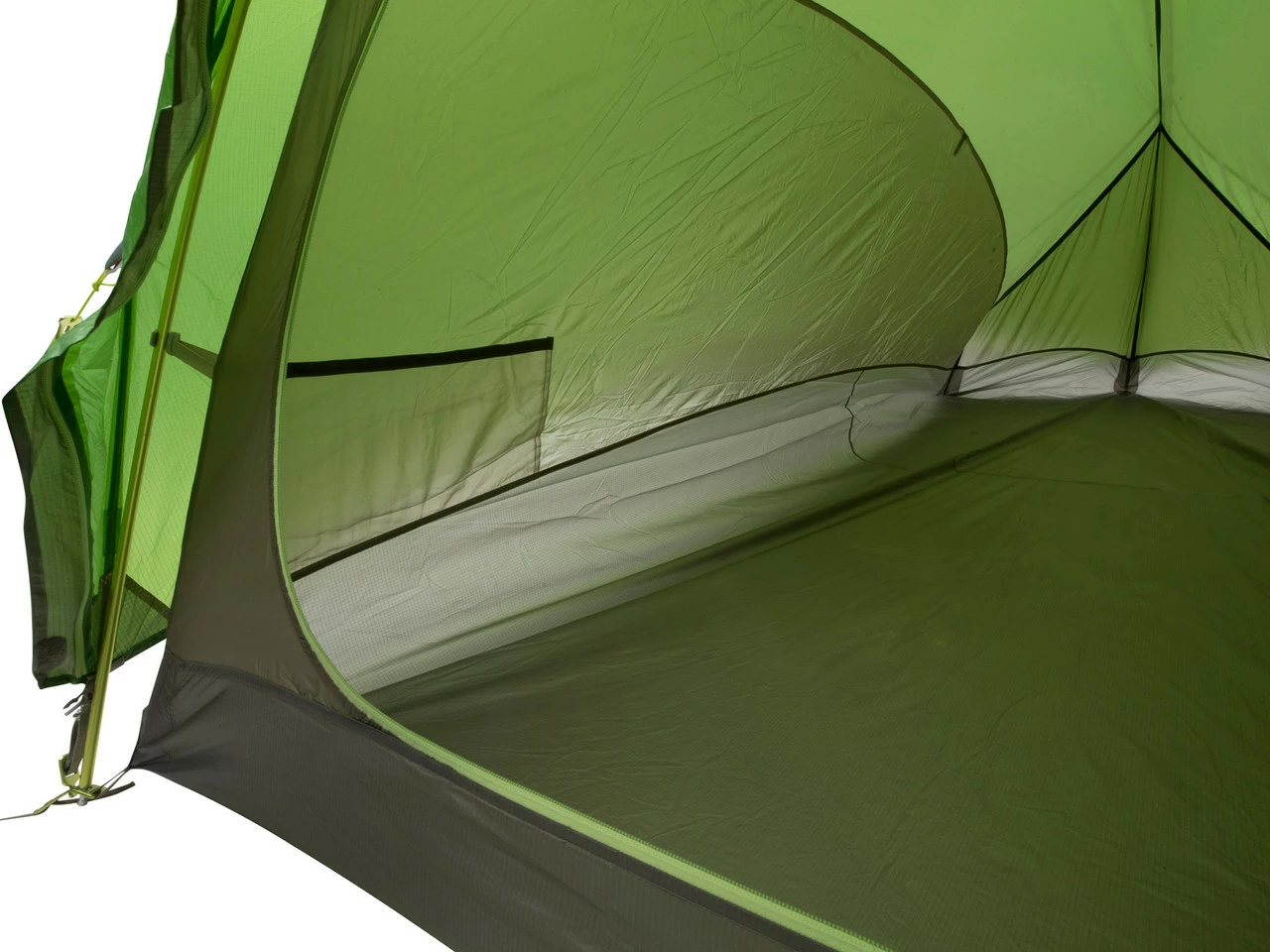 Das Innenzelt besteht aus drei verschiedenen Materialien, die für ein angenehmes Innenklima sorgen. Die Ventilation wird durch ein abdeckbares Moskitonetz geregelt. Ein feines Mesh lässt Wasserdampf entweichen und verhindert das Tropfen von Kondenswasser. Ripstop-Material erzielt eine hohe Textilspannung, sodass der Platz optimal ausgenutzt wird.