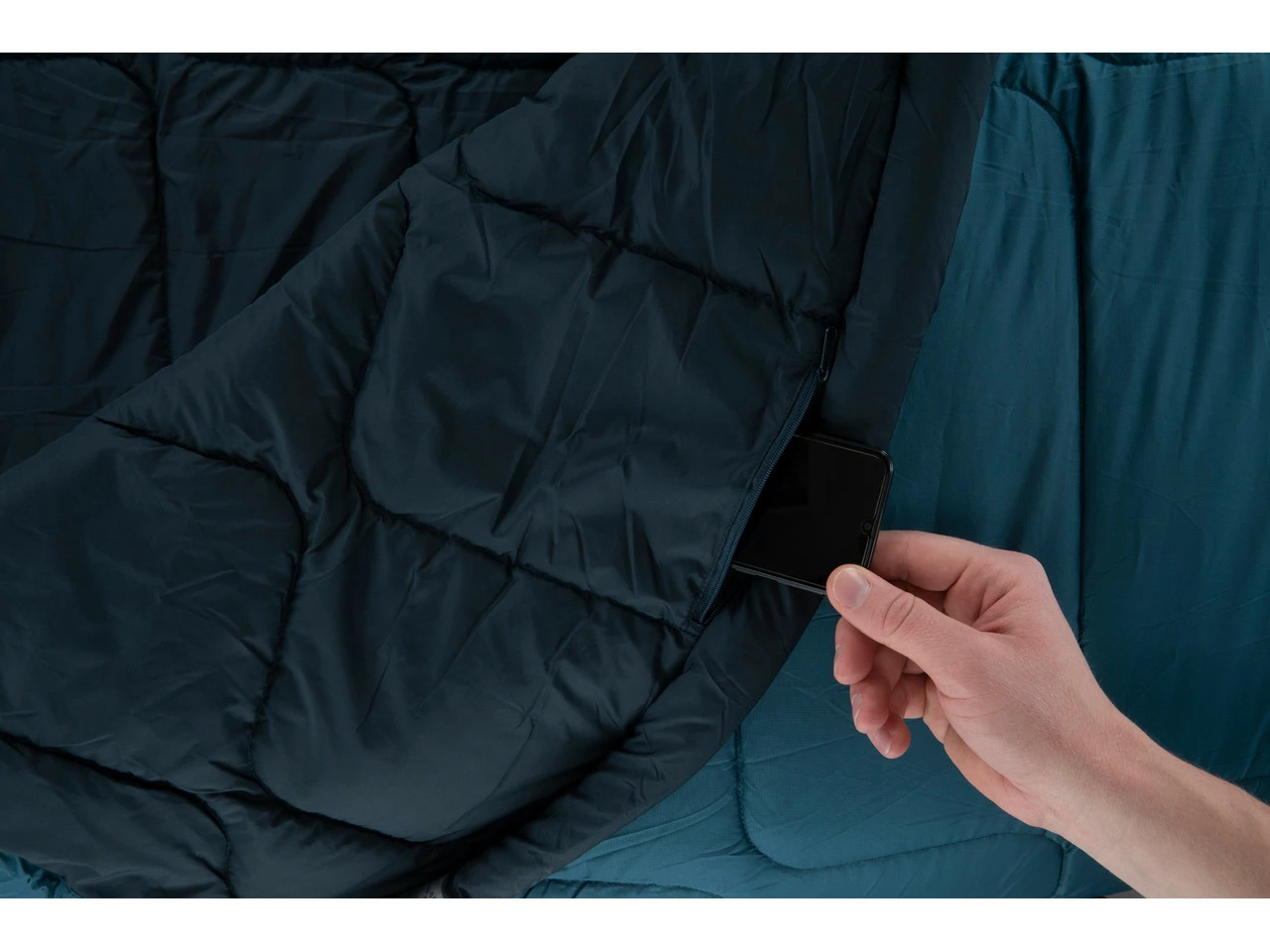 Komforttemperatur:Die untere Temperatur, bei der eine durchschnittliche Frau (25 Jahre, 60 kg, 1,60 m) eine Nacht komfortabel durchschlafen kann. Solltest Du unerfahren sein, ist diese Angabe die beste Orientierung für Dich.Limittemperatur:Die untere Temperatur, bei der ein durchschnittlicher Mann (25 Jahre, 70 kg, 1,73 m) eine Nacht komfortabel durchschlafen kann. Eventuell musst Du Dich den Umständen entsprechend kleiden und verhalten.Extremtemperatur:Die untere Temperatur, die eine durchschnittliche Frau bei starker Belastung durch Kälte 6 Stunden aushalten kann. Schlaf ist ausgeschlossen. Es ist mit einem starken Kälteempfinden zu rechnen, außerdem besteht das Risiko von Gesundheitsschäden durch Unterkühlung.Technische Daten:Gesamtlänge:220 cmKörpergröße max.:190 cmSchulterbreite:80 cmBreite im Fußbereich:44 cmPackmaß:29 cm x 20 cmMaterialzusammensetzung:Hauptmaterial:100 % Polyester (50D 300T Ripstop)Innenmaterial:100 % Polyester (50D 300T)Füllung:Material:100 % Polyester (Sensofiber)Füllgewicht:400 gFeatures:Schlafsack zur Verwendung von Spätfrühling bis FrühherbstMumienschlafsack für hohe WärmeeffizienzFüllung aus Sensofiber für ausgezeichnete Isolationkonturierte Kapuze, passt sich an den Kopf an3D-Fußbox für warme Füßelanger Zwei-Wege-Reißverschluss bis zum Fußteil zur Belüftung in warmen NächtenInnentasche für Wertsachenhautfreundliches, weiches Materialklimaneutrales Produktmit recyceltem PolyesterGreen-Shape-Label und Grüner-Knopf-Siegel für umweltfreundlich und fair hergestellte ProdukteTechnologien:Angepasste Kapuze